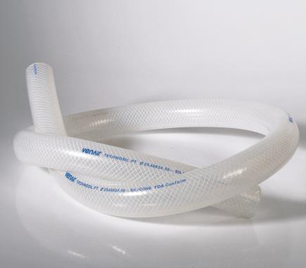 Venair’s Vena® Technosil silicone hose is a polyester braided silicone tubing designed for use in high-pressure environments due to its exceptional resistance. This extruded FDA and USP VI platinum-cured silicone hose, reinforced with a polyester braid, is ideal for food and pharmaceutical processing.