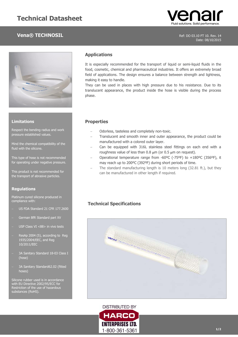 For more information on the Venair VENA® TECHNOSIL hose or to request a quote, contact Harco Enterprises with details of your application by calling 1-800-361-5361 or 705-743-5361, or by emailing [email protected].