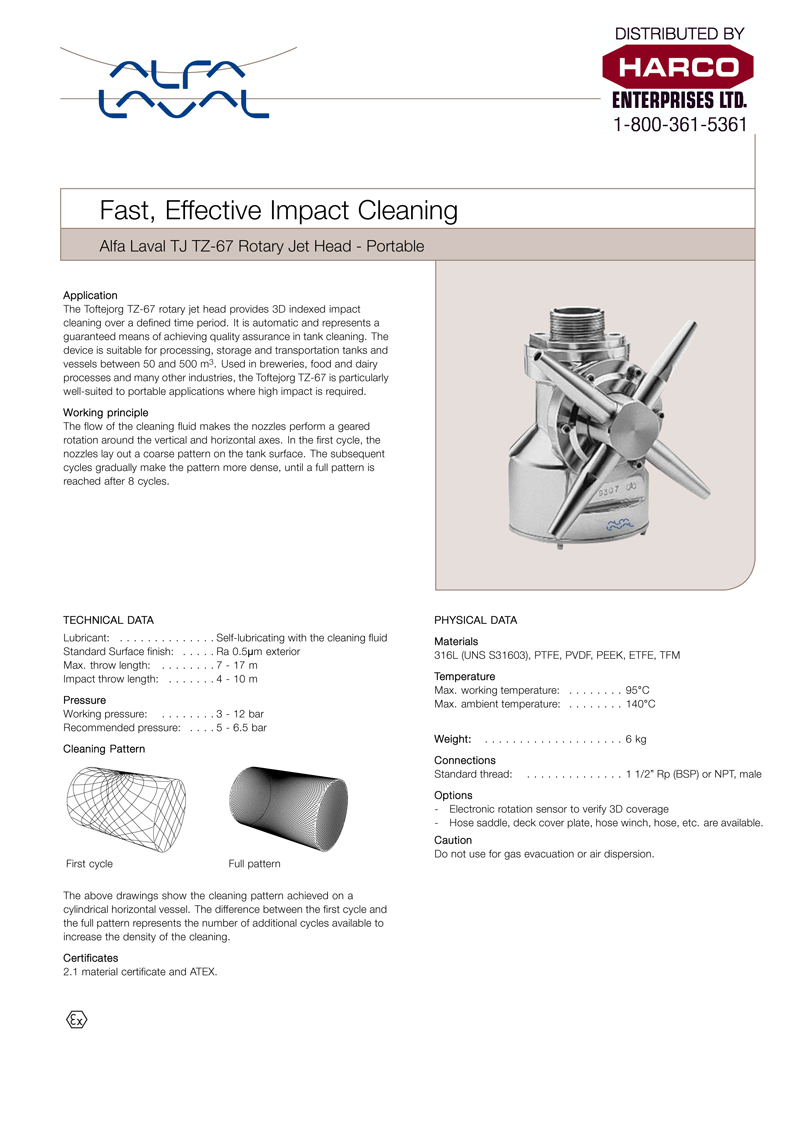 Contact Harco today to learn more about the Alfa Laval Toftejorg TZ-67 rotary jet head and how it can boost your operational efficiency.